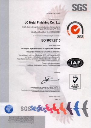 成立于2003年,致力于為中國華南地區的客戶提供高品質、高精密的電鍍服務。杰昌專長于高水平的功能性表面處理,在17年的發(fā)展歷程中,杰昌不斷研發(fā)與改進專業技術,并堅持以一流的技術、穩(wěn)定的品質和用心的服務來滿足客戶的不同需求。并通過了ISO9001:2015質量管理體系認證,現有客戶群廣泛覆蓋機械加工、模具制造、醫(yī)療器械、通訊設備等行業,精密表面處理已應用于高速列車、航天、精密連接器等領域。